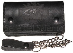 Una catena robusta e staccabile consente di collegare il portafoglio alla cintura o di portarlo in tasca o in borsa.
